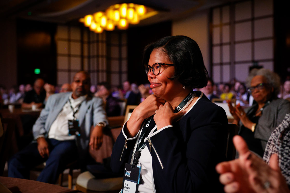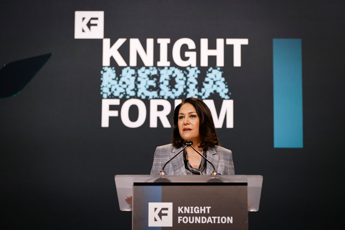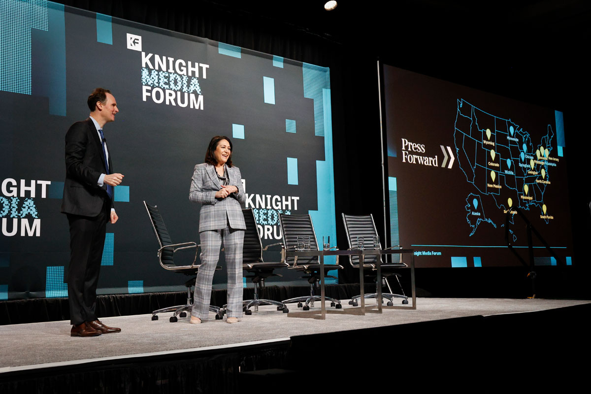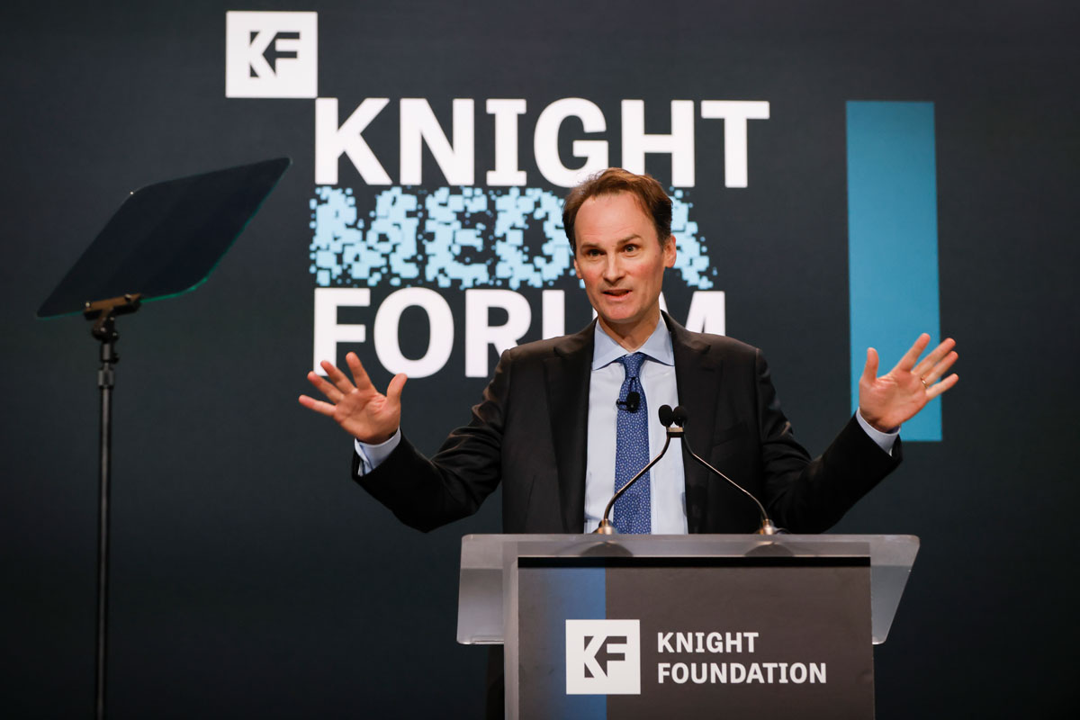 Knight Foundation VP/Journalism @jimbrady at #KMF24 with the two